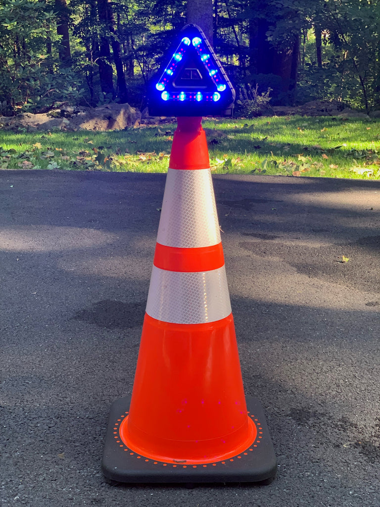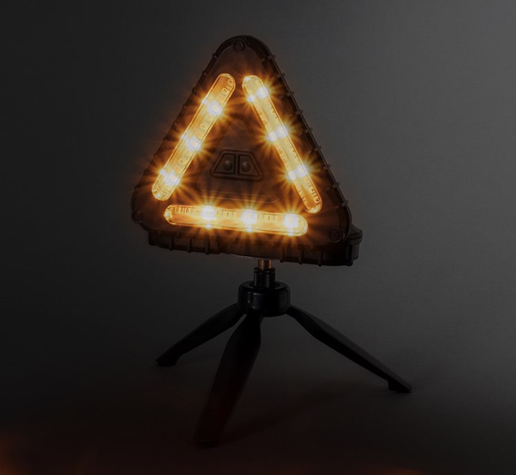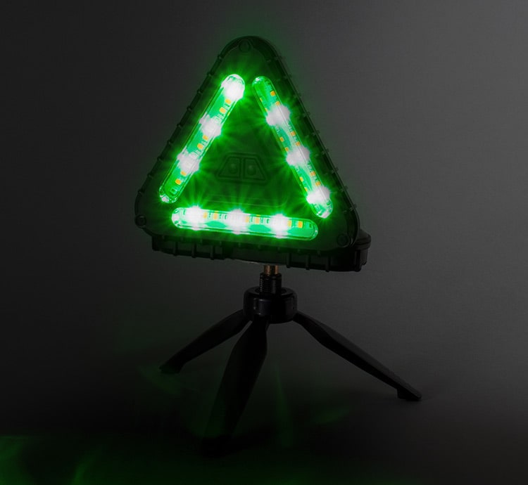- Tripod legs can fit inside orange cone hole & flare can then be set on magnetic base