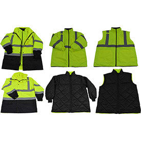 Class 3 parka system with removable Class 3 inner jacket, both are waterproof, inner jacket is reversible to a black quilted jacket, detachable sleeves on both jackets, 4 pockets on both jackets, hood, Small - 5XL